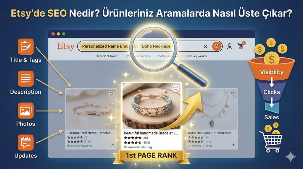 Etsy’de ürün yüklüyorsun ama görünürlük bir türlü artmıyor mu? Sebep çoğu zaman SEO eksikliği.